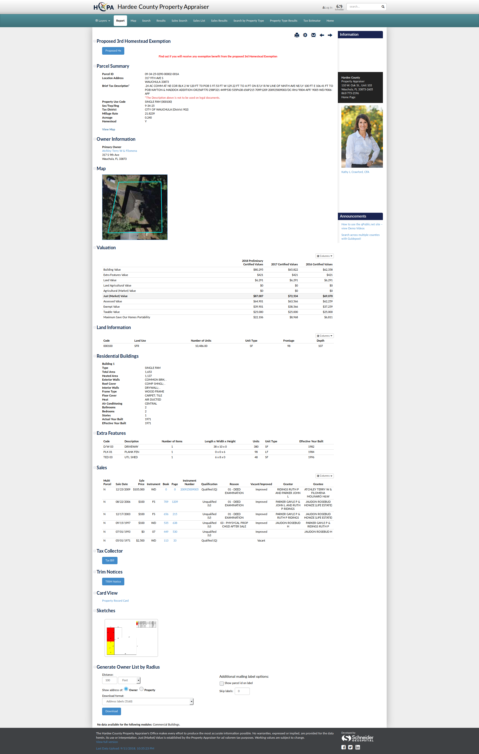 I sent an email the Hardee County Property Appraiser and asked them to Investigate the fact that Atchley was committing Homestead Exemption fraud by Not living in the home he claims homestead on. Kathy Crawford replied to me saying “Please be advised that our office did conduct an investigation to determine Homestead eligibility for Mr. Terry Atchley for 317 9th Avenue South, Wauchula and found nothing to warrant a denial of Homestead Exemption. The documents generated to validate Homestead eligibility are not available for public review and are considered confidential. Our records indicate that Mr. Atchley is not receiving the benefit of Homestead Exemption anywhere but this address and we have no evidence that the home is being rented.”