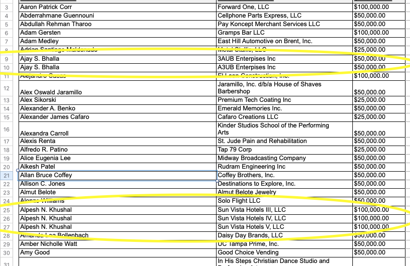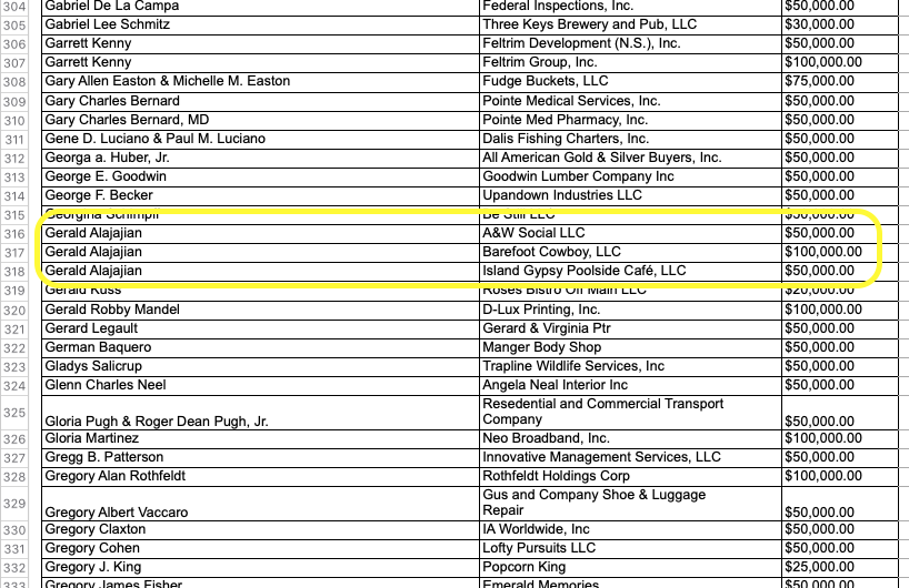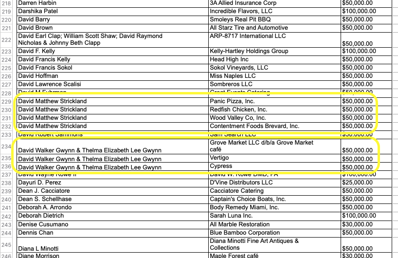 About a week ago I read a story on Spectrum 13 Orlando written by Greg Angel. The headline was “Who got the Florida Bridge Loans? We have the list”. After downloading the list I reached out to Greg. His story is short but identifies a few business’s that cashed in big. After researching a few of the business’s I was shocked.