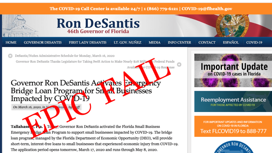 According to Gov DeSantis these loans are for “Small” business’s that have been impacted by the coronavirus. These loans are interest-free for up to one year and are designed to bridge the gap to either federal SBA loans or commercially available loans. More can be read here.